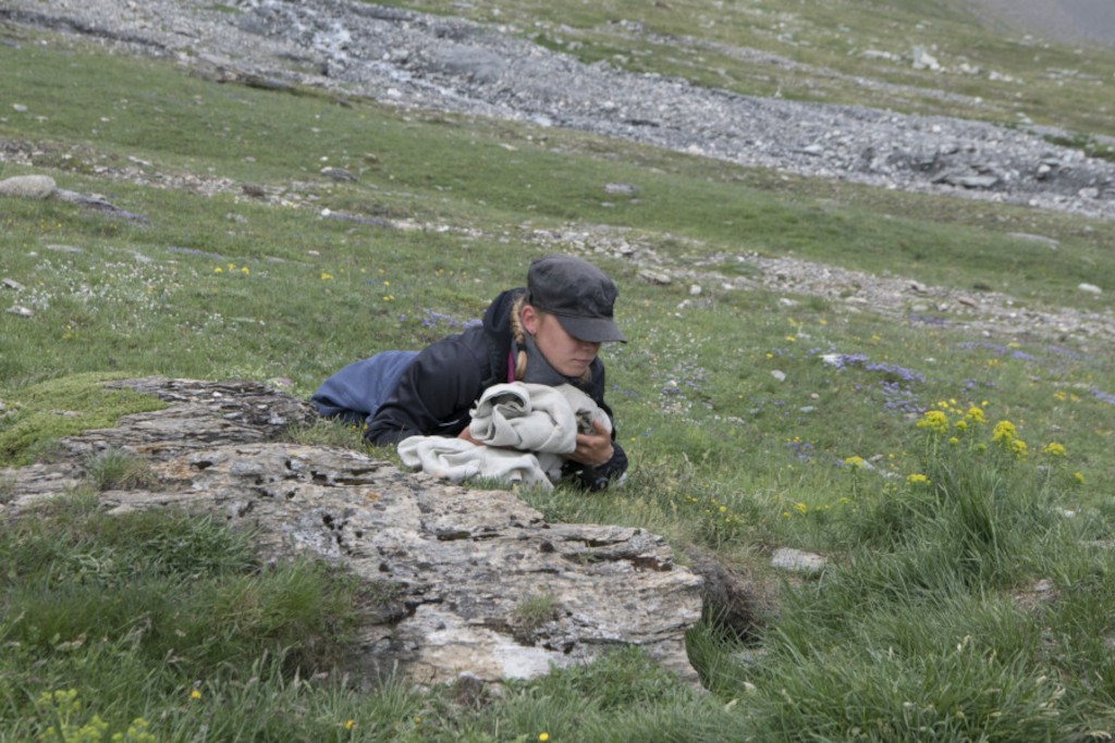Pour répondre à ces questions, quoi de mieux que d’étudier la marmotte dans son habitat naturel ? Sylvia et son équipe effectuent alors un travail de terrain éprouvant et rigoureux. D’abord la capture, la partie la plus longue. Si les marmottes adultes peuvent s’attraper avec des pièges et des collets, c’est autrement plus difficile avec les marmottons. Nés depuis seulement 40 jours, ils explorent l’extérieur du terrier parfois pour la première fois. La femelle est donc d’autant plus vigilante à toute présence inconnue. L’équipe devra donc se montrer patiente pour leur capture.